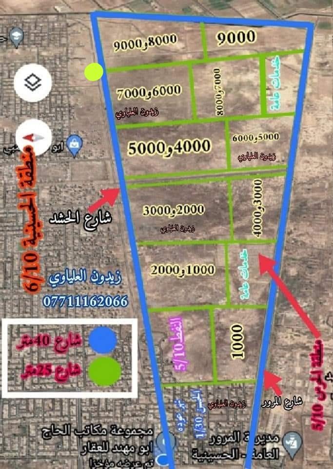 قطعتين ارض تجاريات للبيع مساحة ٣٠٠م على شارع الحشد ال٤٠ تجاري تجاري بغداد الحسينية طابو الزهور خدمات كاملة تبليط مي كهرباء رقم القطعة الاولى ٢٥٣٤٦ رقم القطعة الثانية ۸۳۰۸ بمطقة الحرس بسمي تحويل مباشر سعر القطعة الوحدة 115 مليون رقم تلفون وبيها مجال بسيط