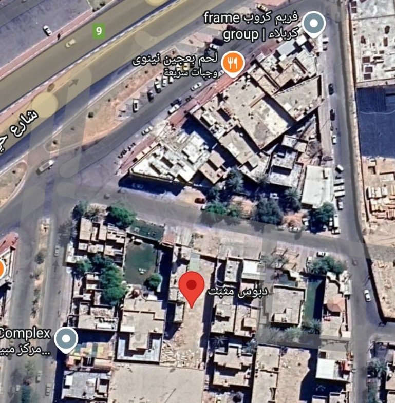 أرض تجاري للبيع في كربلاء٬حي الحسين(١٠٨٣م²)السعر للمتر ١٠مليون دينار