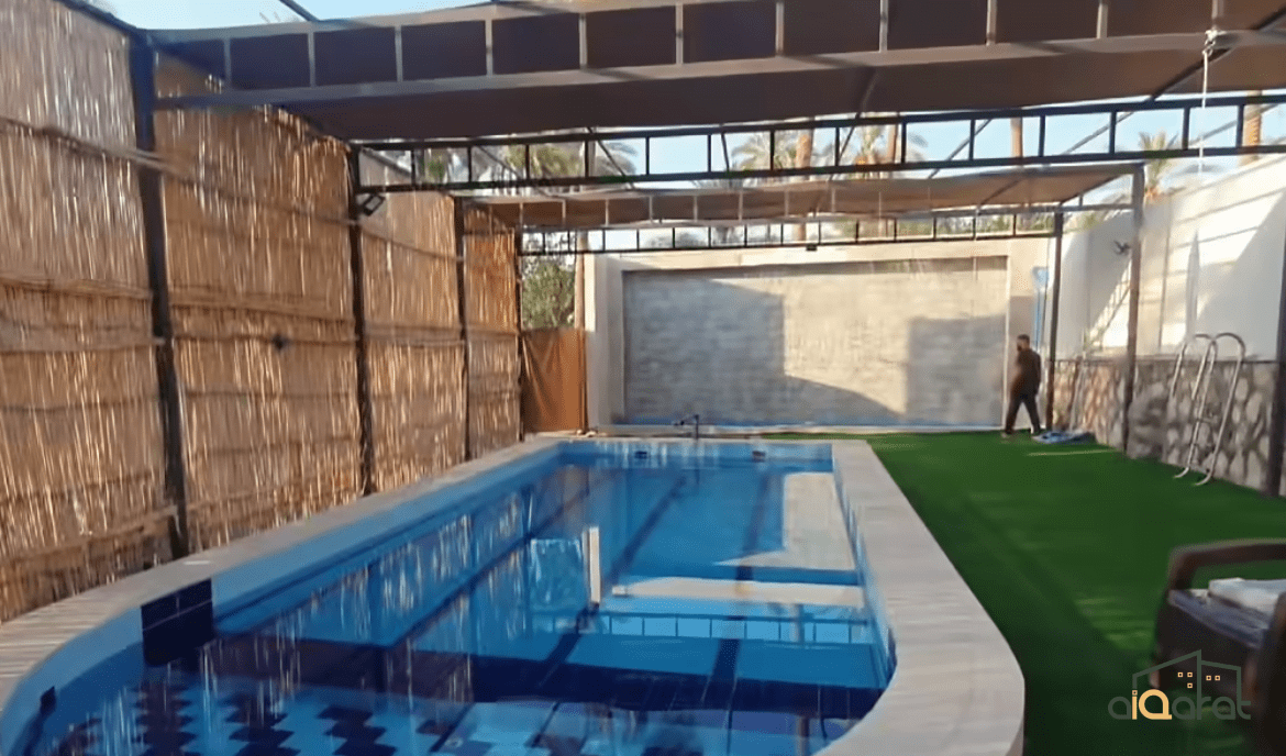 يحتوي علئ جميع وسائل الراحة والترفيه مثل الحدئق والملاعيب للاطفال والمسابح والشللات وميز للبليارد