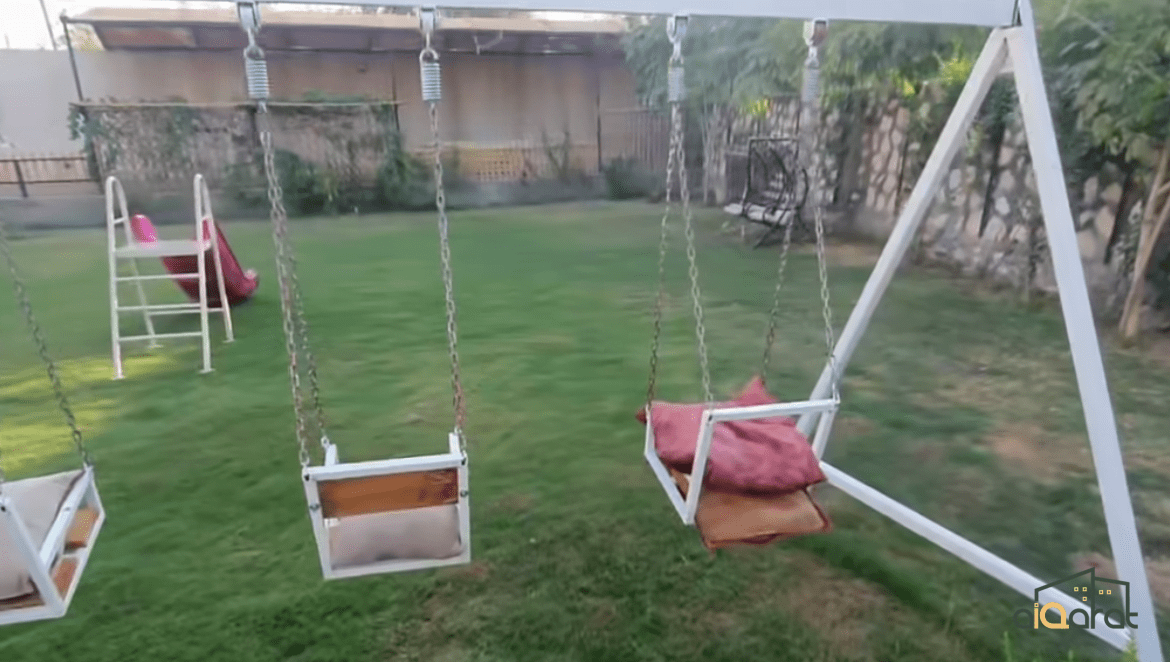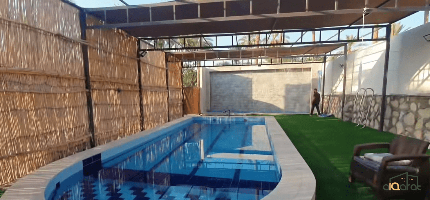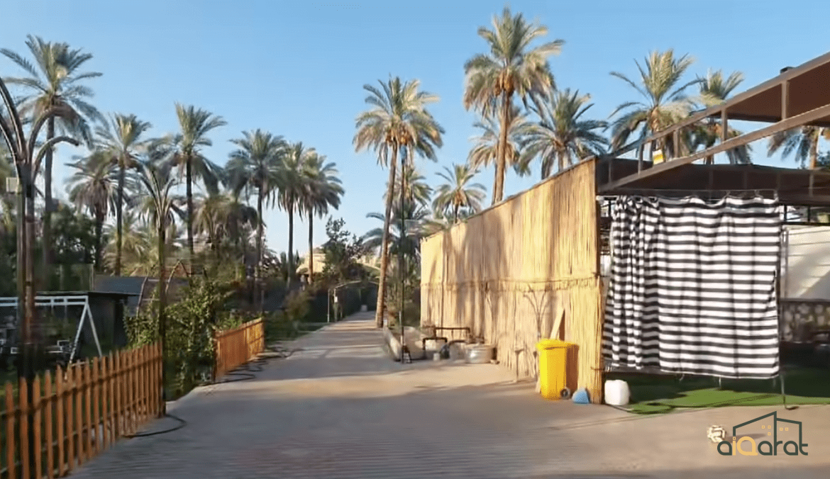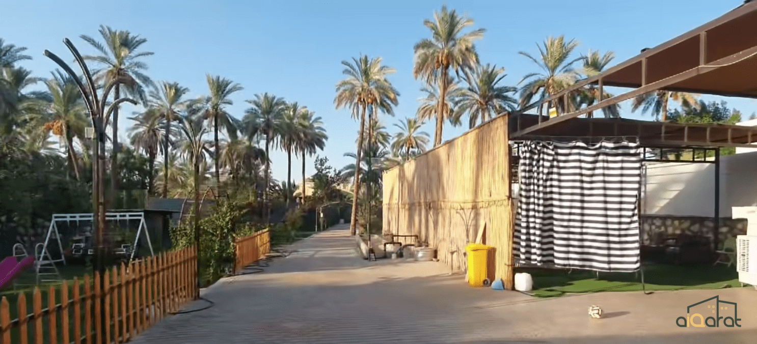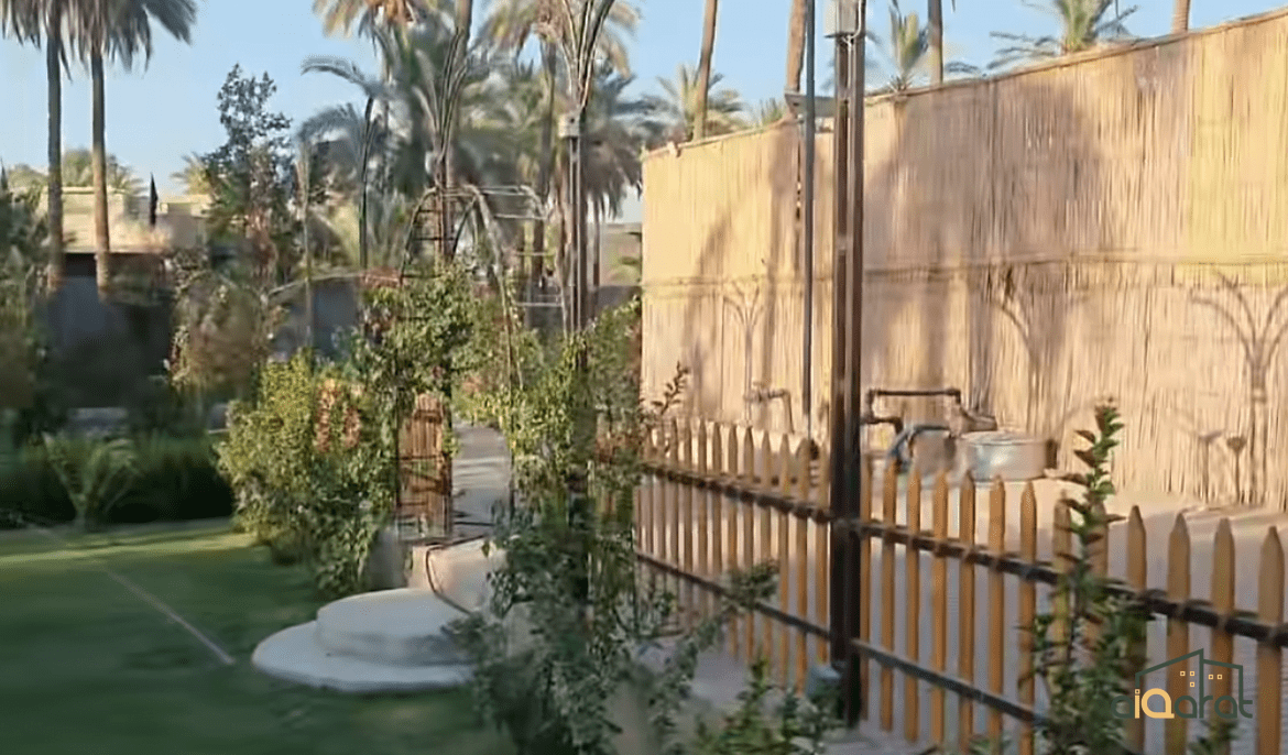يحتوي علئ جميع وسائل الراحة والترفيه مثل الحدئق والملاعيب للاطفال والمسابح والشللات وميز للبليارد