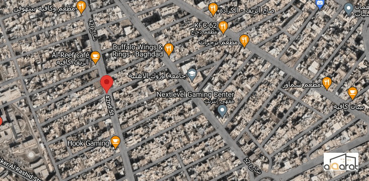 ارض سكنيه للبيع موقع ممتاز جدا فرع سكني بحت المساحه 249م الواجهه 8م في بغداد سعر المتر ٣٥٠٠$ صافي مع المجال البسيط الموقع الكراده شارع 42