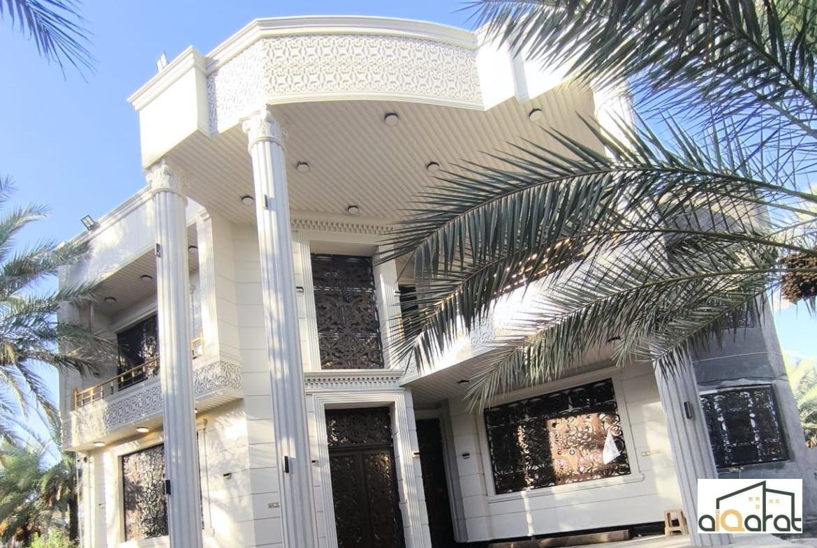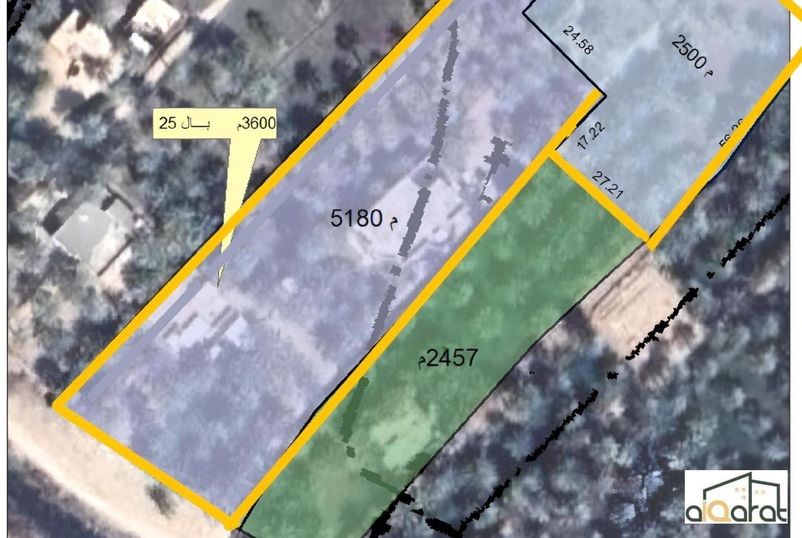 عقار 3دونم يحتوي على فله بناء درجه اولى وبيت اخر بسيط مغروس بالنخيل والحمضيات سند 25 تحويل اسهم باسم المشتري