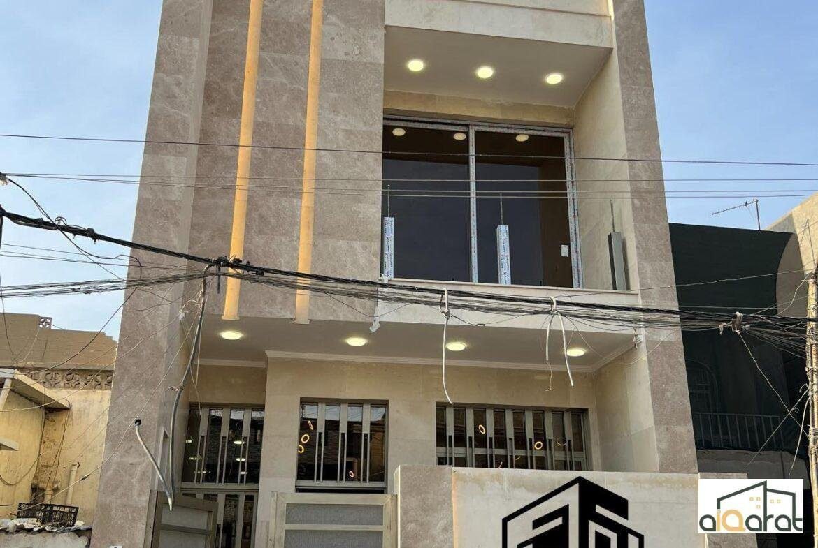 دار للبيع حديث قيد الانجاز تسليم مفتاح بناء درجه اولى٬في الطالبية مقابل كريم سفيح٬المساحه 100 متر٬الواجهة 5متر٬ النزال ٢٠متر٬ يحتوي على استقبال وحولي مطبخ ومنور وخدمات خارجيه وداخلية وغرفه نوم بالطابق الاول٬والطابق الثاني غرفتين نوم سويتات وحولي٬الثالث بيتونه كبيره وسطح امامي وخلفي٬ السعر ٣٨٥مليون دينار قابل للتفاوص