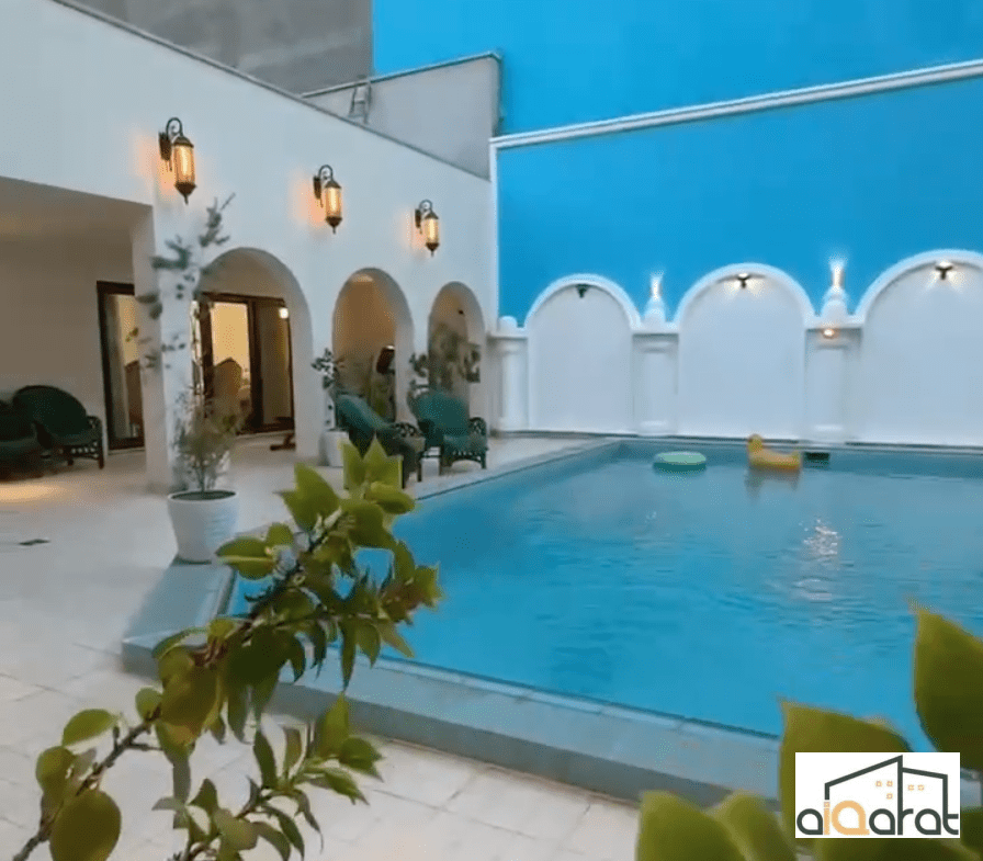 فيلا للبيع المساحة 900 متر واجهة 25 متر تحتوي على طابقين 8 غرف نوم سويتات ومنازع على عدد الغرف 6 صالات مسبح كراج 10 سيارت تحت الارض (سرداب) حديقة كبيرة سعر المتر 40 ورقة صافي شارع 42