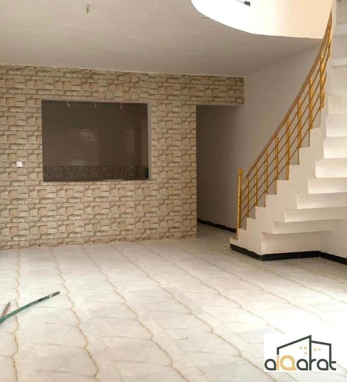 طابق الاول مكون من غرفة وكراج واستقبال كبير وصاله كبير ومطبخ مع صحيات داخليه وخارجية