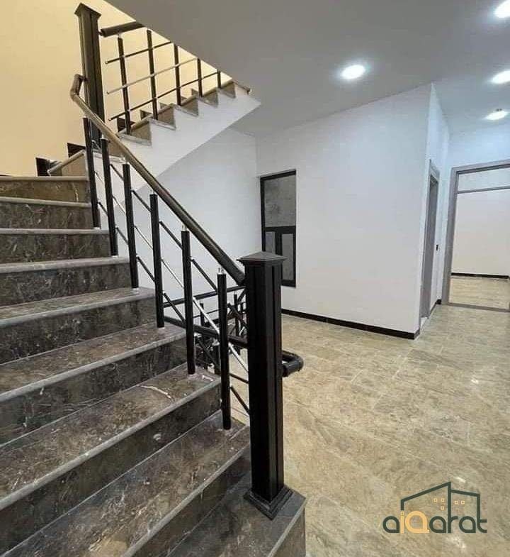 يحتوي على صاله ومطبخ حولي وغرفه نوم٬وخدمات صحيه ومنور والطابق الثاني يحتوي على غرفتين نوم وخدمات صحيه وبلكونه٬الطابق الثالث حولي وسطحين جاهز للسكن. الموقع جداً راقي وهادئ جانب شارع الصناعه على شارع 15 م ورصيف 5 م موقع ممتاز تبليط جديد قرب التجاري وقرب الخدمات.