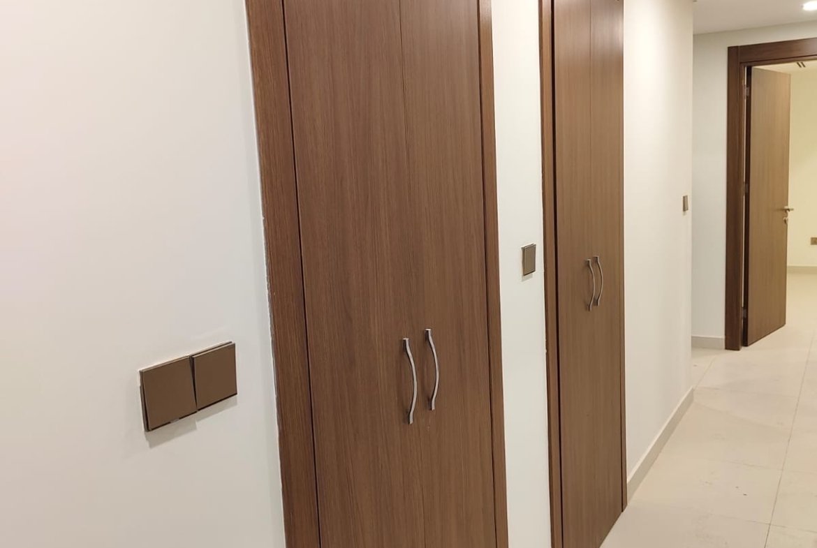 شقة في مجمع البروج السكني قرب المطار طابق 14 واجهه مطار بناية الهدير A مساحة الشقة 154 غرفتين نوم واحده منها ماستر حمام ضيوف حمام اخر صاله مطبخ مجهز بالكامل غرفه خزن غرفه غسل الملابس الشقة جديدة غير مسكونه سابقاً الايجار الشهري 900 دولار الايجار السنوي 850 دولار