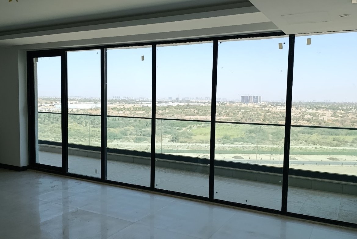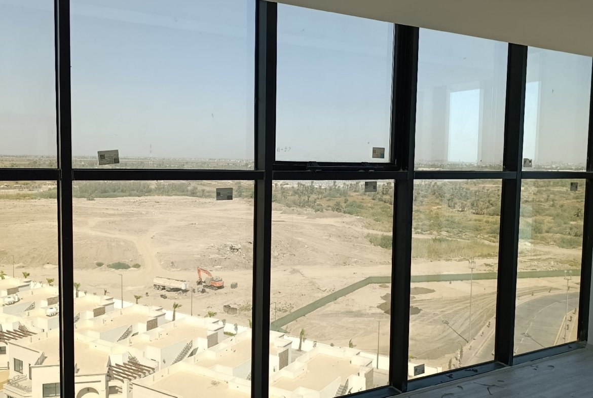 اطلالة باتجاه الفلل و البيوت و تطل على جهة ابراج ميلينيوم