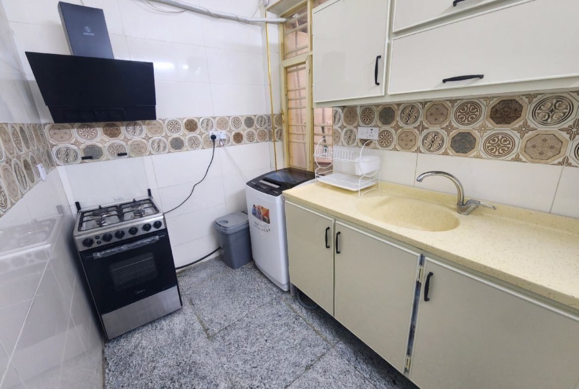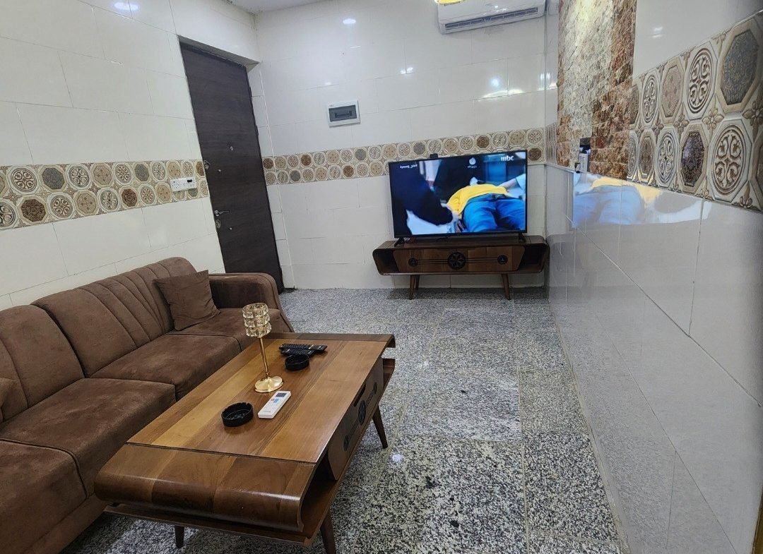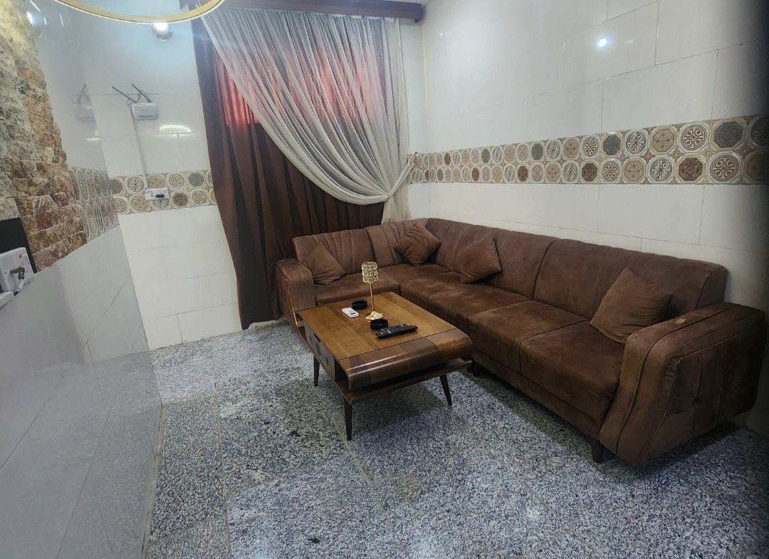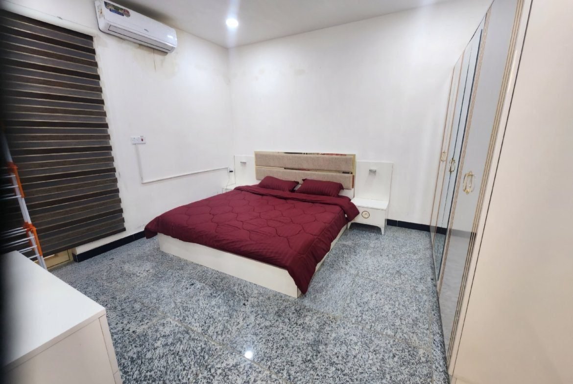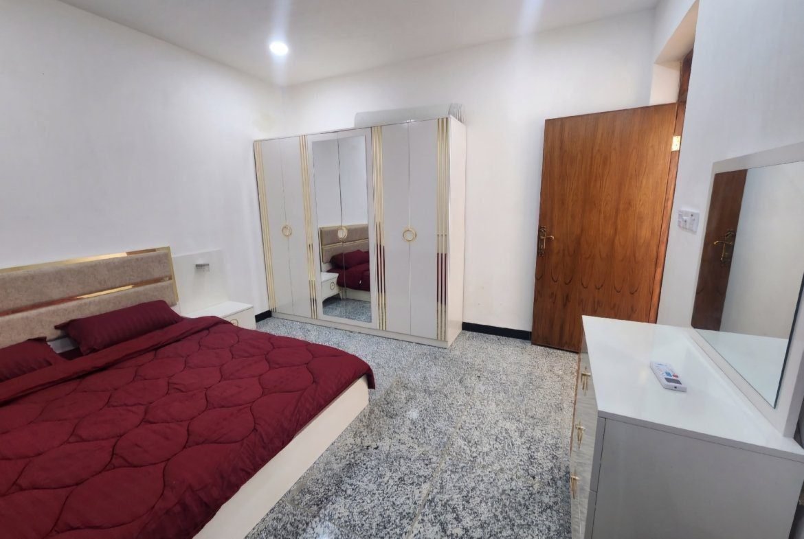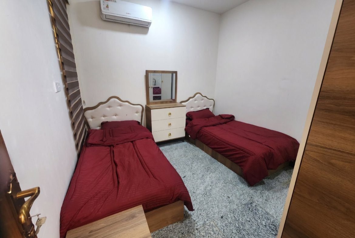 غرفتان نوم وصاله ومطبخ وخدمات صحيه علما ان البنايه تحتوي على حارس ومصعد وكامرات وباب كارد سكيورتي وخدمة الانترنيت والكهرباء ٢٤ ساعه