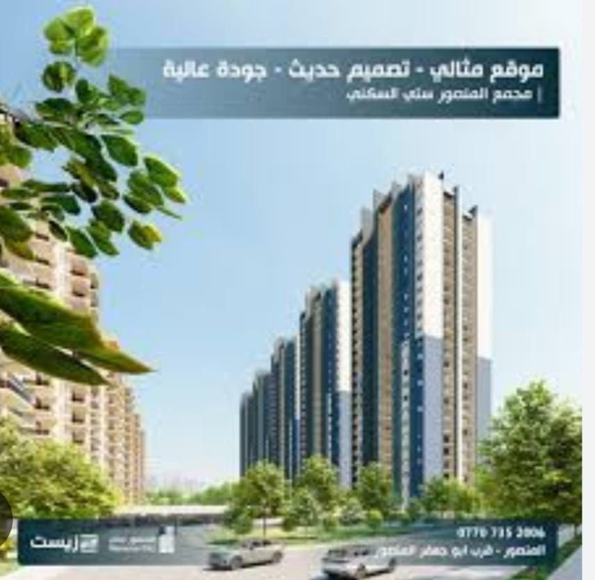 شقة في مجمع المنصور ستي تحوي ٣ غرف نوم وحمامات عدد ٢ بمساحة ١٧٢ للتواصل الاتصال على ٠٧٧٠٢٦٤٦٢٦٨