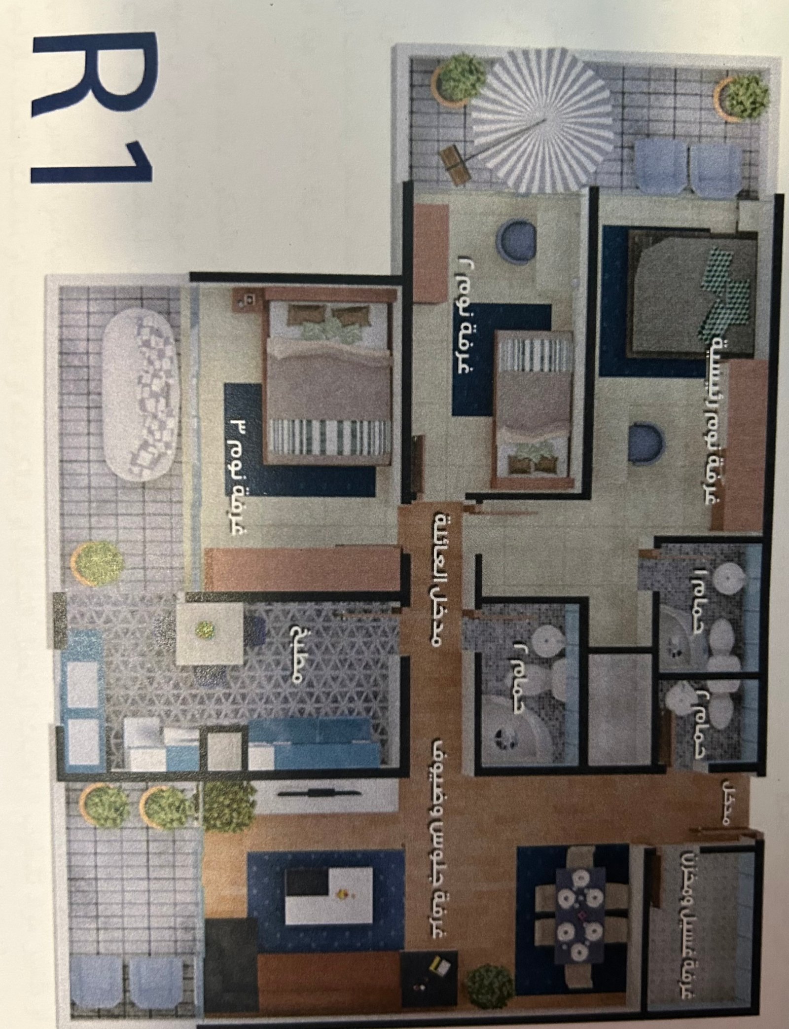 • 3 غرف نوم (بينها غرفة ماستر بحمام خاص)