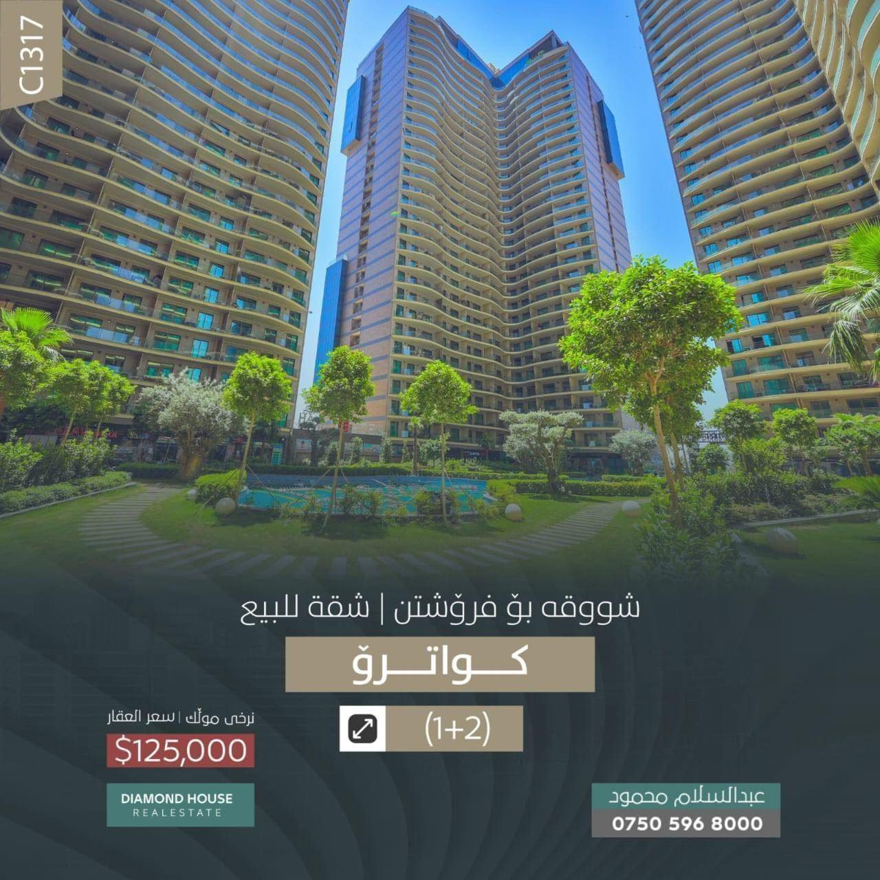 شقة للبيع في أربيل،مجمع سكني MRF Quattro Towers (١٢٣م²)السعر١٢٥/الف دولار