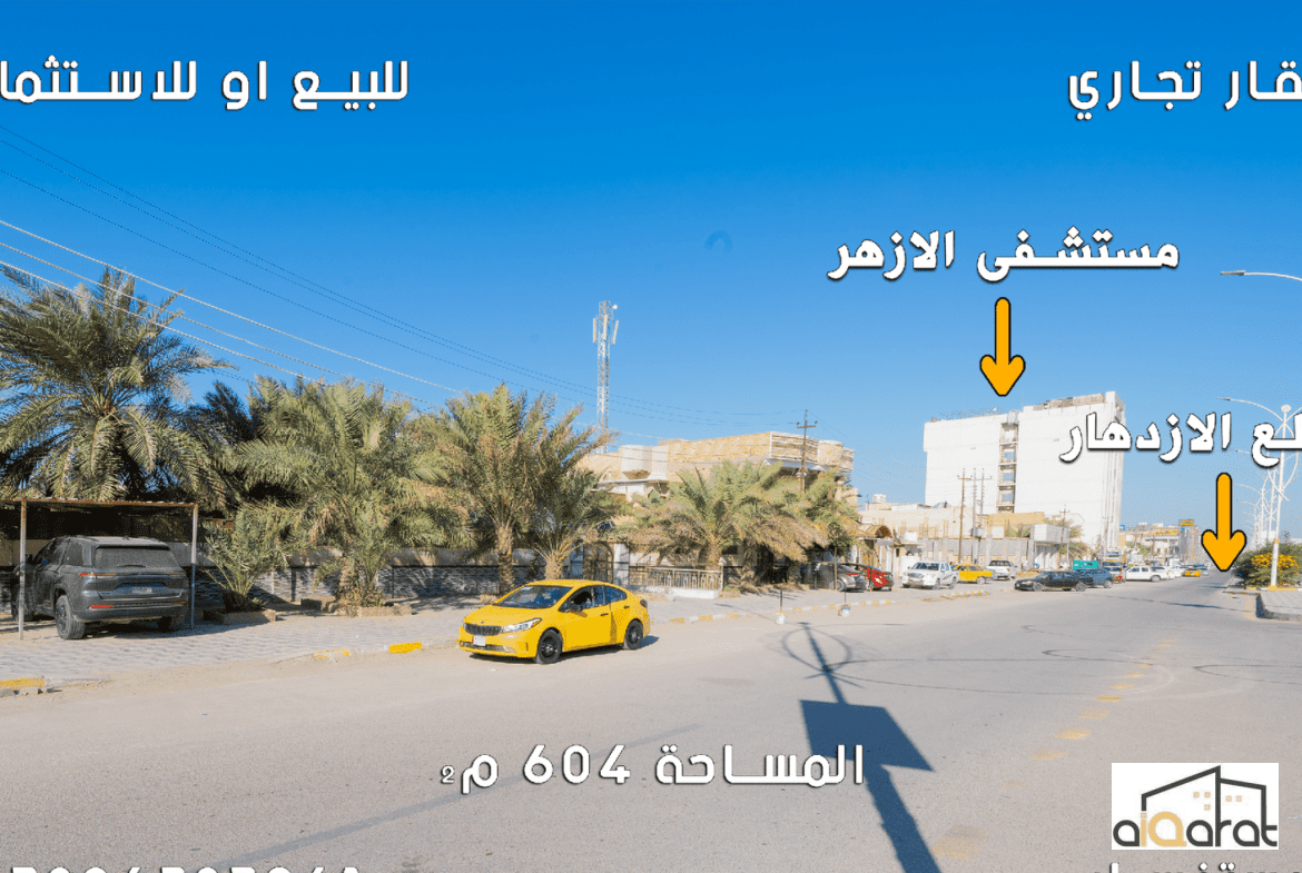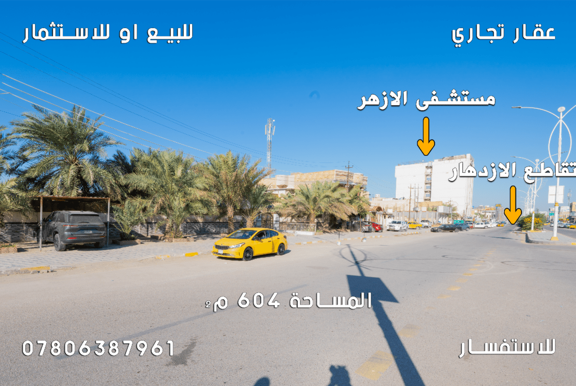 عقار تجاري للبيع في الناصرية٬شارع مستشفى الازهر(٦٠٤م²)السعر للمتر ٧مليون دينار