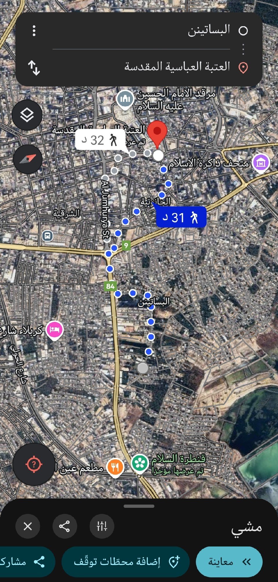 وموقع مميز: الولاية -المدينة القديمة- حي البساتين (الملاصق لشارع باب طويريج سايد الدخول)، متصل بشارع باب طويريج وهو الأقرب إليه ببعد 5 دقائق مشي، و متصل بالشارع الرابط بين قنطرة السلام و شارع السيد زينب (ع) (الذي يوصل إلى باب بغداد)، ومتصل بشارع ميثم التمار،