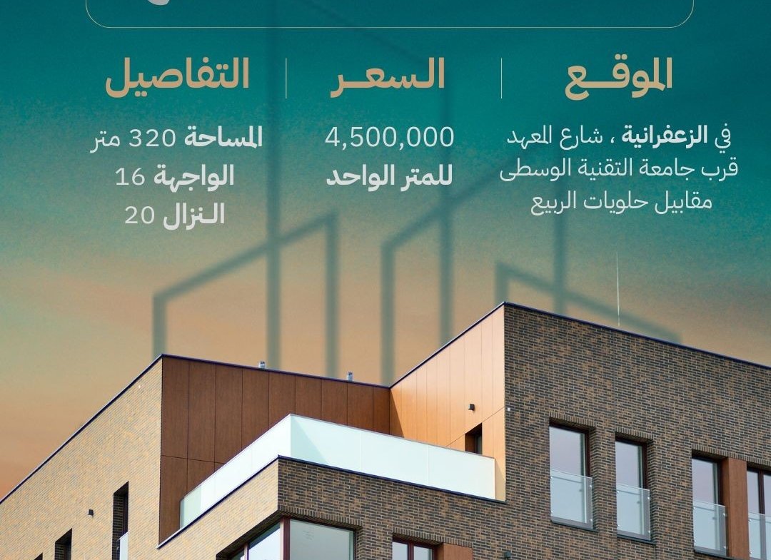 عمارة تجارية للبيع في الزعفرانية(٣٢٠م²)السعر للمتر ٤٬٥٠٠مليون دينار